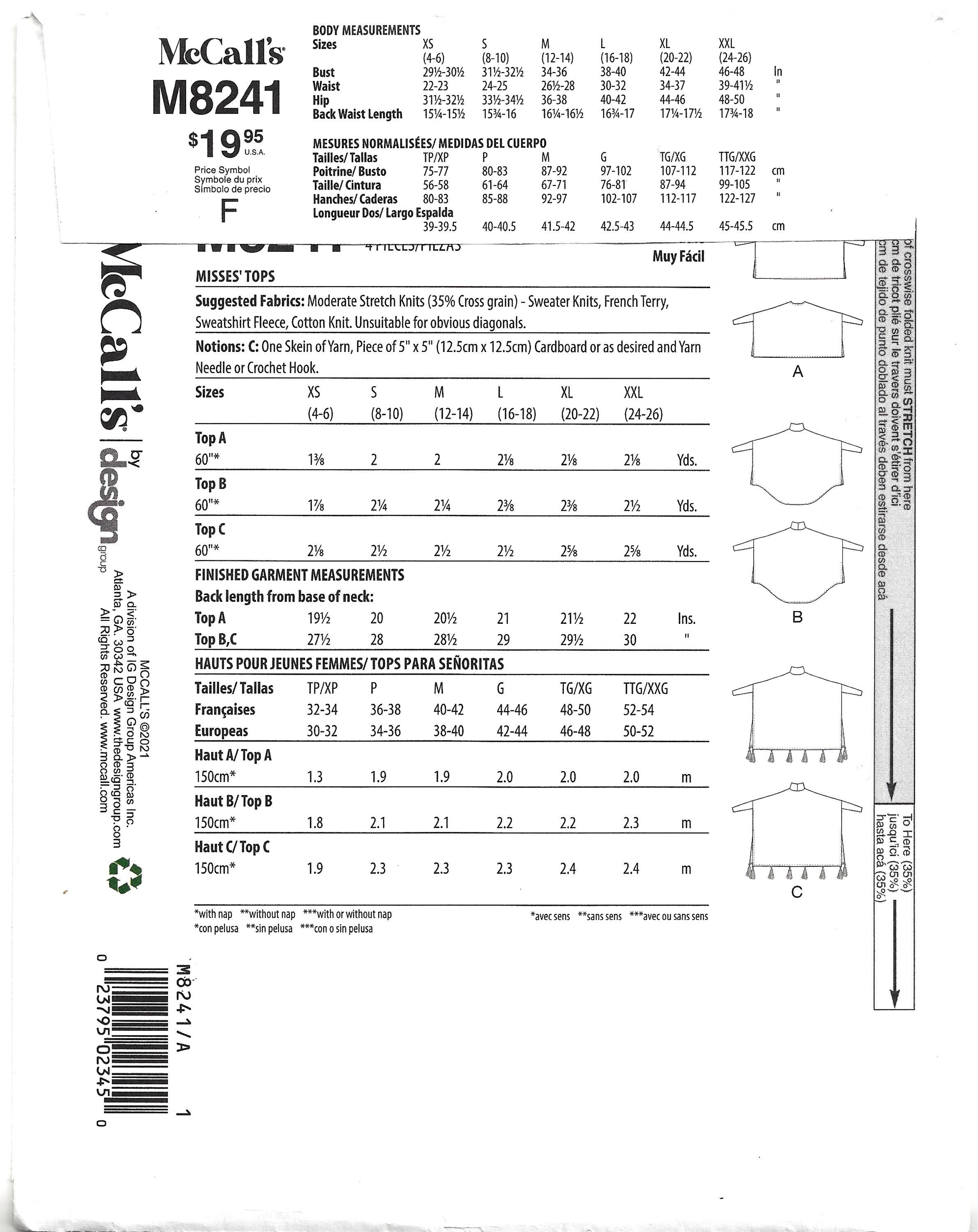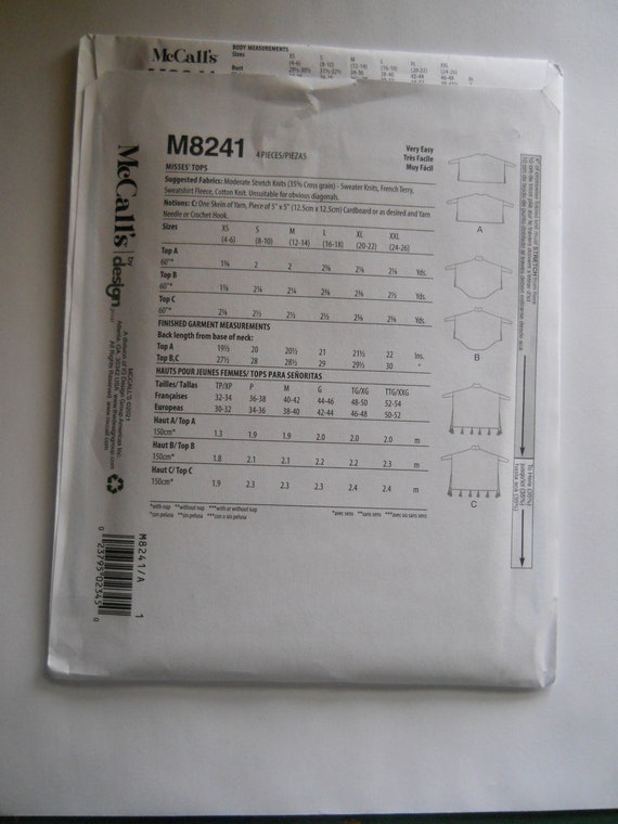 Mccalls M8241 Sewing Pattern Misses Very Easy Knit Poncho Tops Etsy